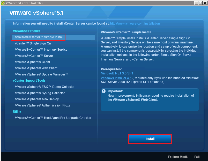 New Install this is where you install a new vCenter 5.1 server and then add you hosts to it.