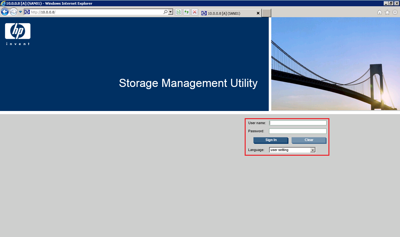 Log into your P2000 G3 by browsing to the IP Address of either Management Controller
