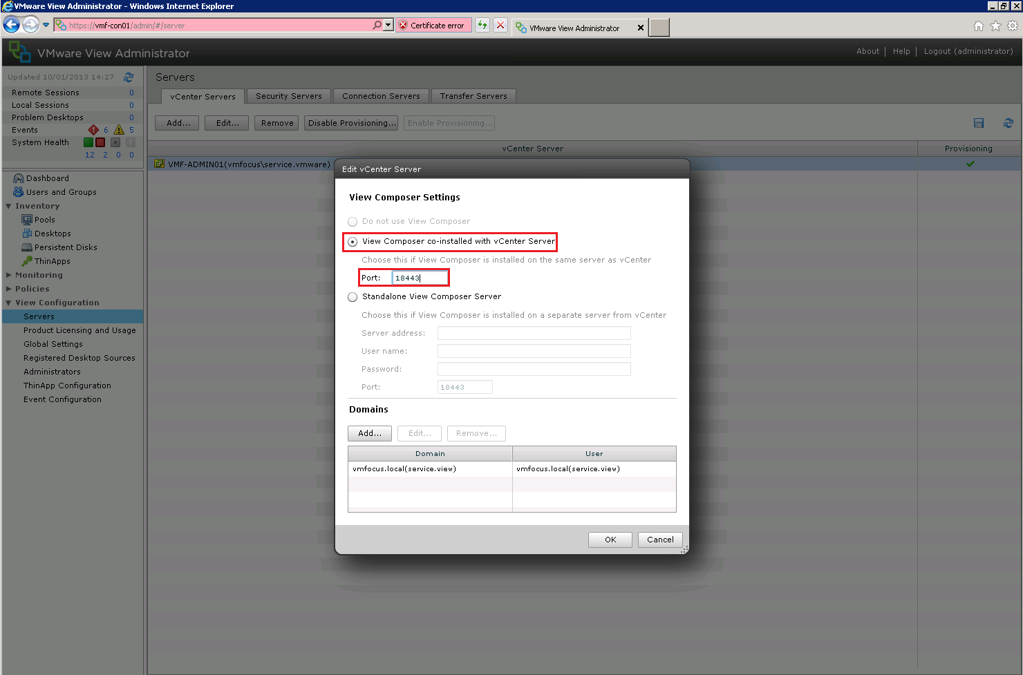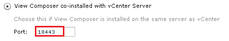 We are going to use View Composer co-installed with vCenter Server on Port 18443