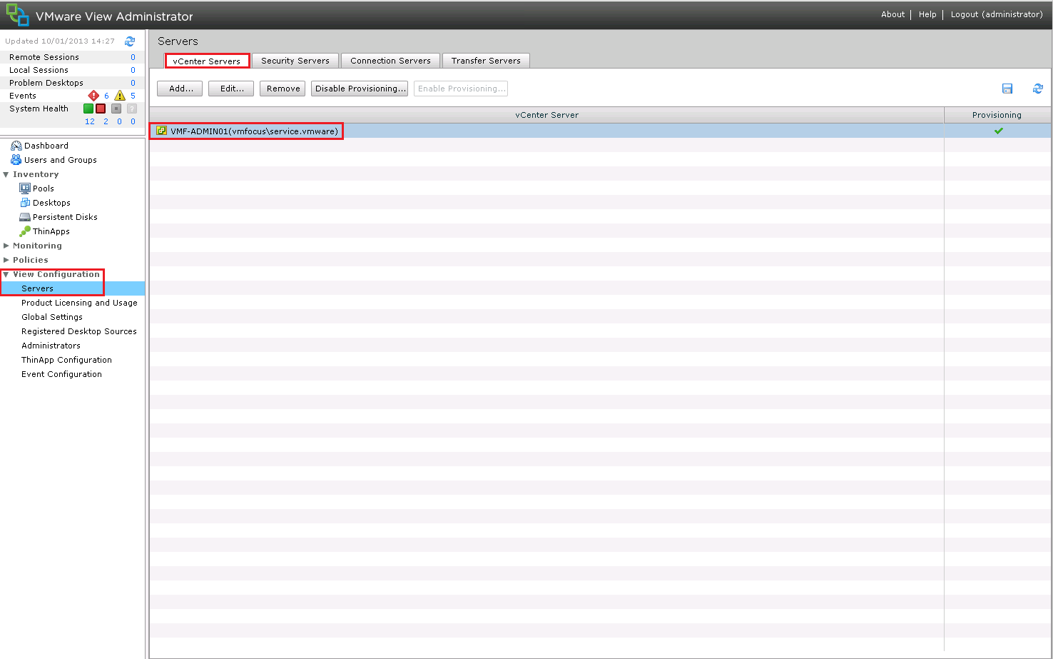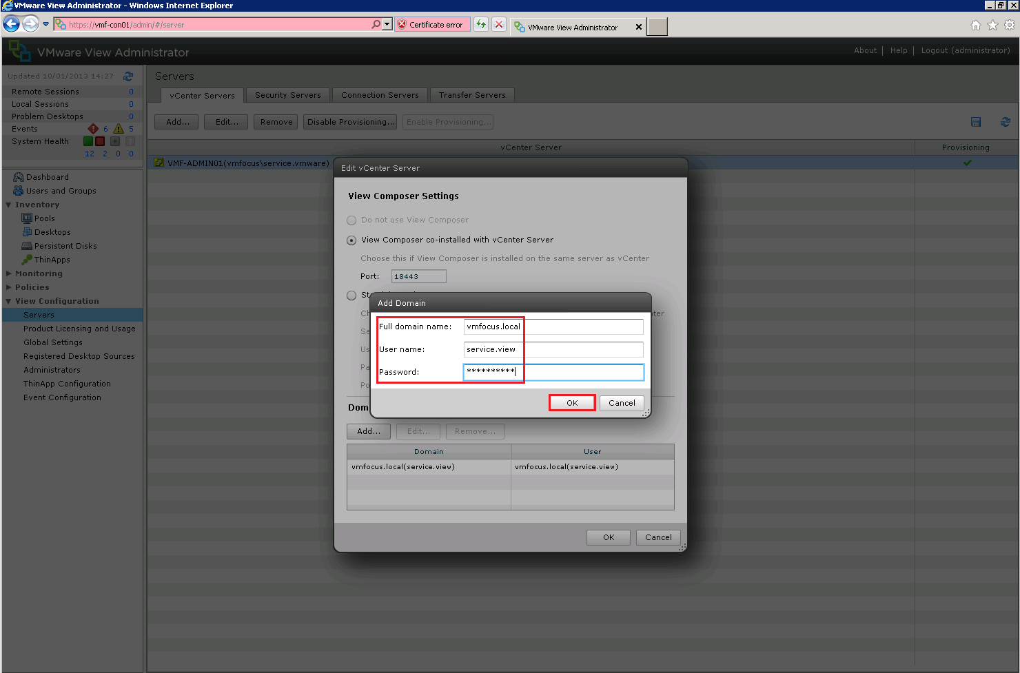 Enable View Composer From View Administrator & Add Domain Account(s)