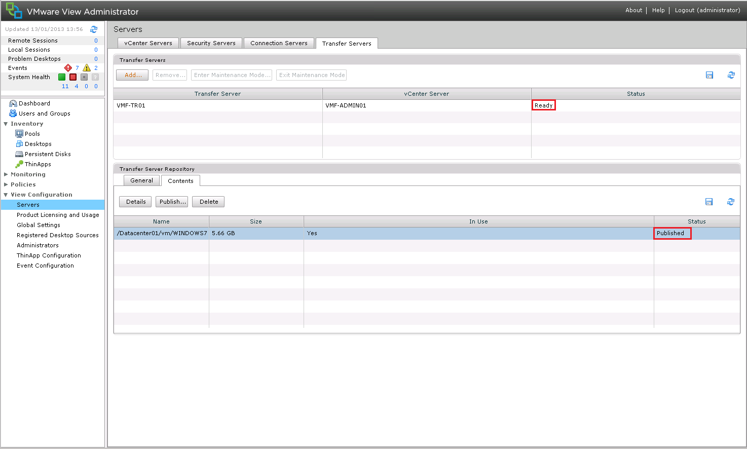 I have already added my Transfer Server into View to make sure I had it working before I did a blog post!