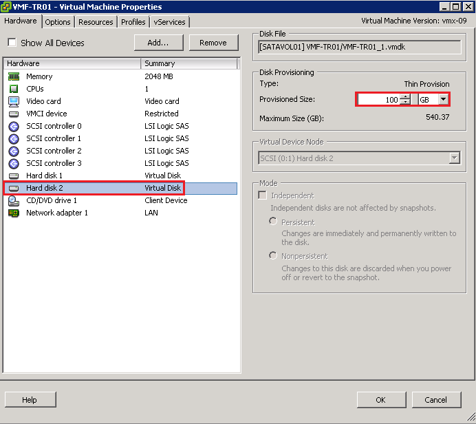 Cool, now we are in Maintenance Mode, we can add an Image to our Repository. First thing we are going to do is add another HDD to our Transfer Server. You can see that I have added a 100GB VMDK Thinly Provisioned