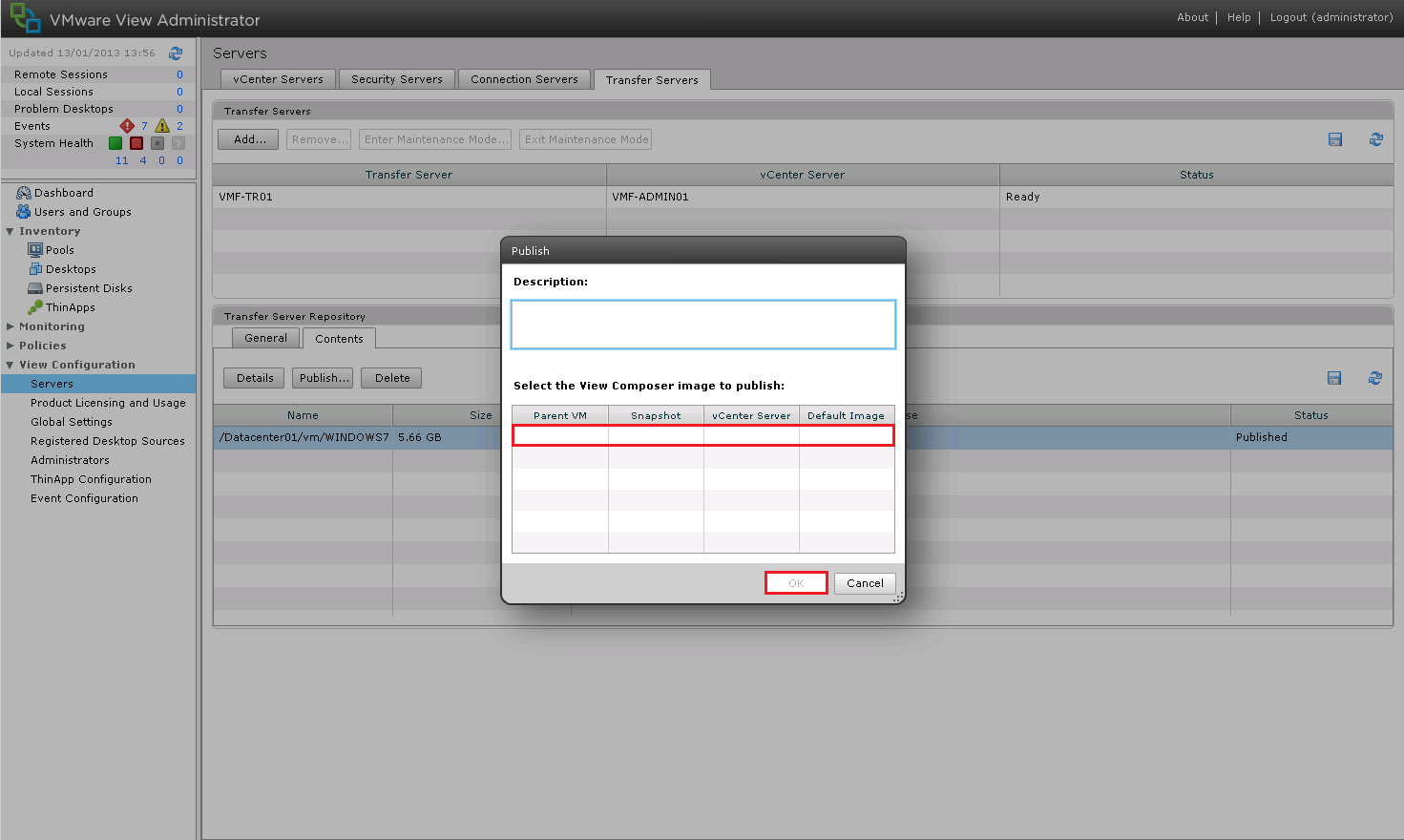 The Transfer Server Repository is the location for your Linked Clone Replicas (the snapshot of your original Operating System) or your Manual Desktop Pool. It’s worthwhile noting that the Transfer Server can only be used with Dedicated Desktops, not Floating Desktops.