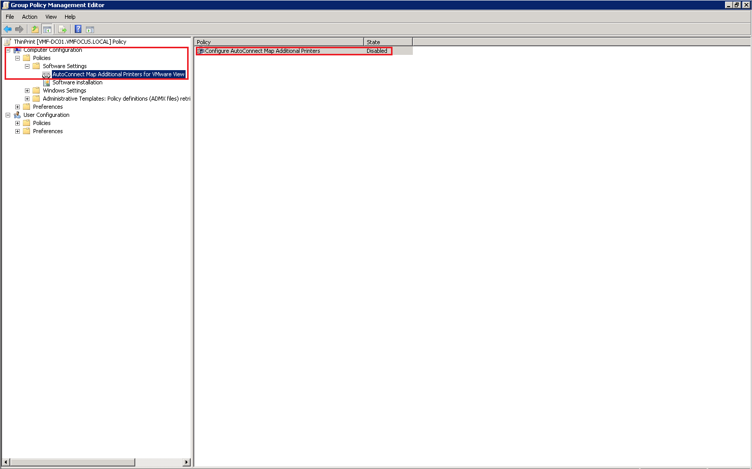 Naturally, the GPO is blank at the moment. Let’s edit it and go to Computer Configuration > Policies > Software Settings and you will see AutoConnect Map Additional Printers for VMware View