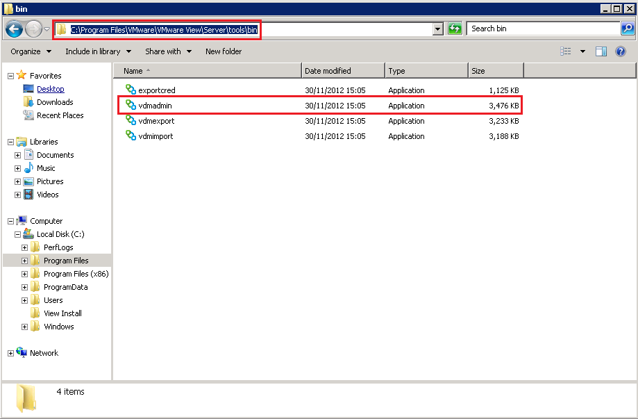 vdmadmin is located in C:Program FilesVMwareVMware ViewServertoolsbin by default