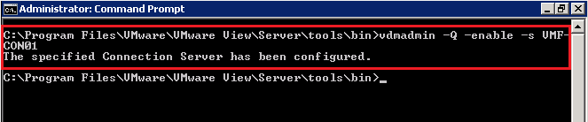 - vdmadmin -Q -enable [-b authentication_arguments] -s connection_server [-requirepassword]