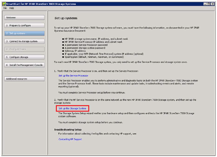 Back to the SmartStart and the next thing we want to do is select ‘Set up the Storage System’.
