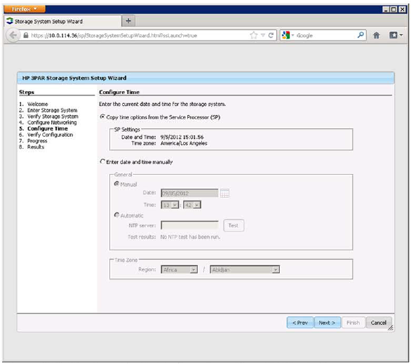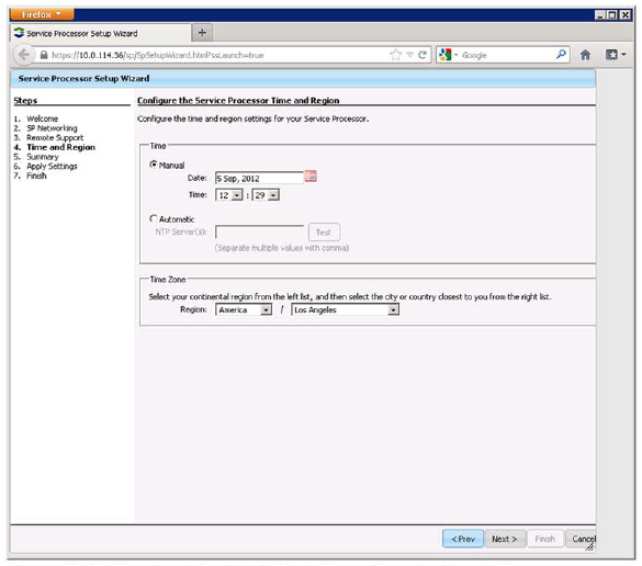 Next we configure the time, it is recommended to get the time from the Virtual Service Processor
