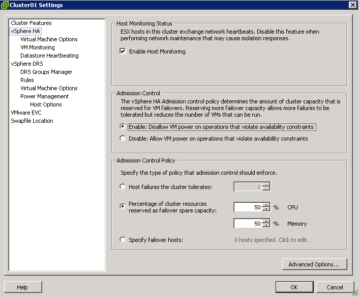 Turn this on, I know the default is disabled, but that’s not an excuse.  Why wouldn’t you want vSphere to monitor your VM’s and restart them if it has no network or datastore activity?