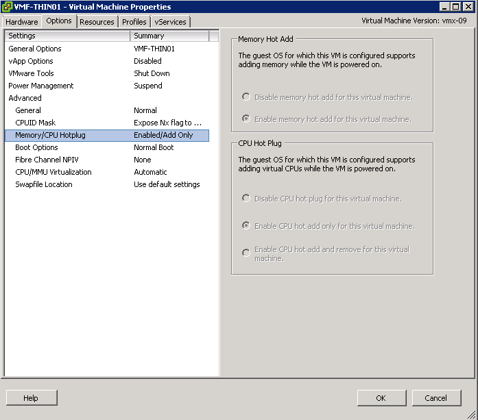Virtual Machine workloads change over time, why cause unnecessary downtime and potential evening or weekend work for yourself? Make sure that you enable Memory and CPU Hot Add on your templates.