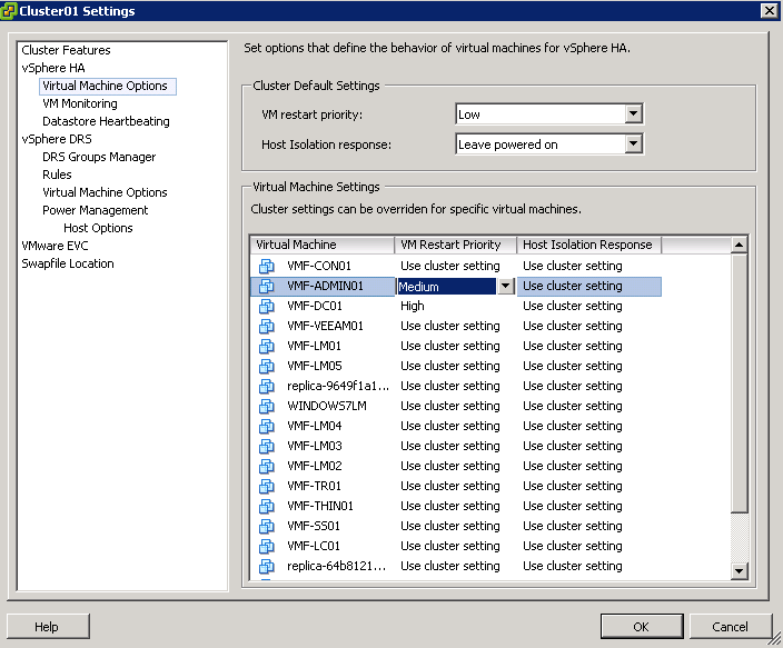 Let’s start with the premise that not all virtual machines are equal.  If you have virtualised Domain Controllers you would want these to be high priority restarts, followed by SQL and then application servers that connect to SQL.  I wrote a blog post on this a while back click me.