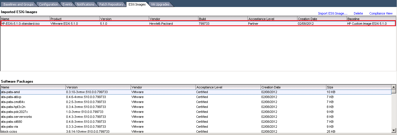 Next we need to create a a baseline image, I’m going to roll with HP Custom Image ESXi 5.1.0 then click Finish