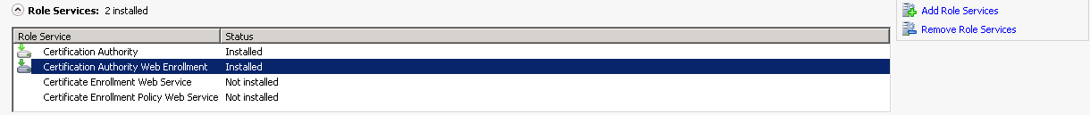 This should have the Certification Authority and Certificate Authority Web Enrollment services installed, mine is Active Directory integrated so that the my Internal Certificate Authority is automatically trusted by any domain members.