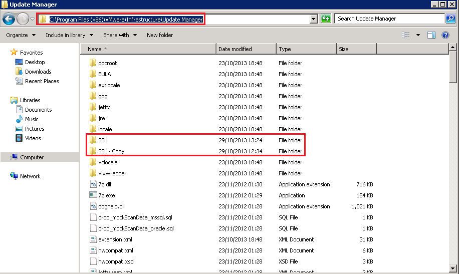 Navigate to C:Program Files (x86)VMwareInfrastructureUpdate Manager and make a copy of the SSL folder