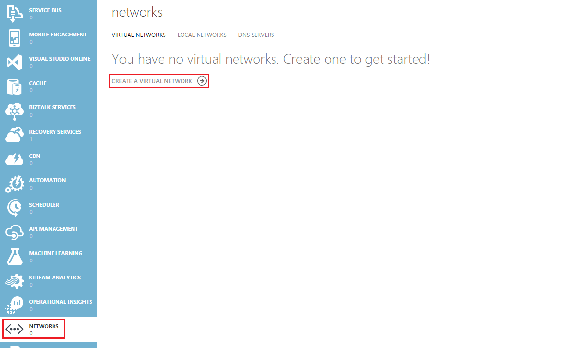 Once you are logged into the Azure Portal, the first thing we want to do is create out virtual networks.  I’m going to create two: