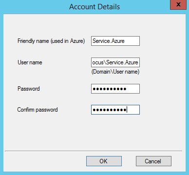 Onto credentials now.  We need to add an account that has the credentials to install the ‘Mobility Service’ onto virtual machines.   I have created an account called Service.Azure as per the dialog box below.