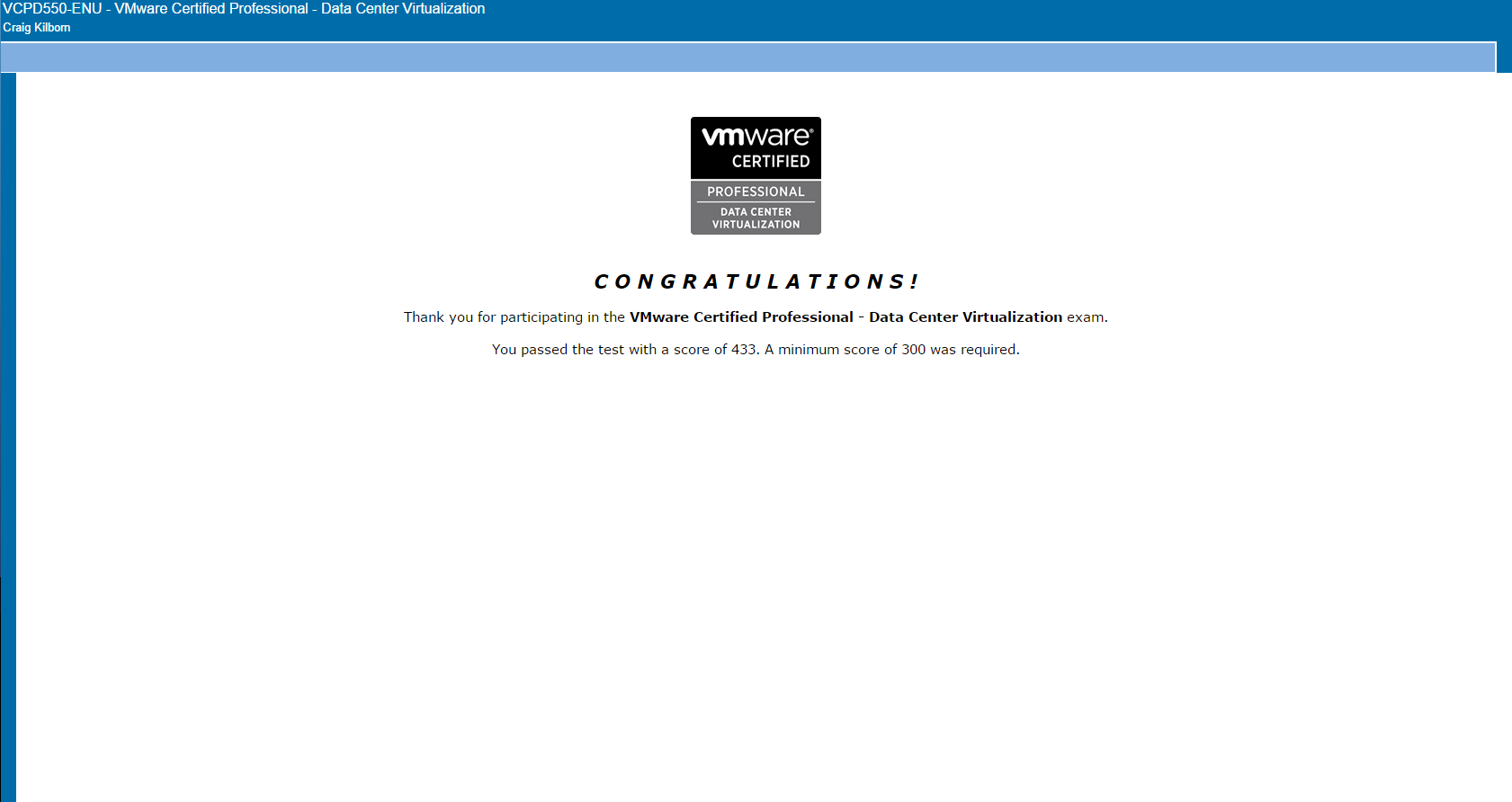I didn’t keep a log for the effort I put into the VCAP-DCA, but I believe it was approximately one month of study time, to get to a point where I felt I had a chance of passing.