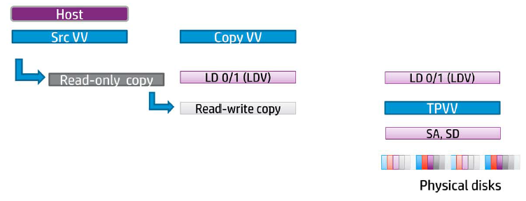 Virtual Volumes are then created which draw space from the CPG, and placed back into the CPG, if the Virtual Volume was thin provisioned by using tools such as sdelete at the Windows level or run vmkfstools -y 60 on an ESXi Host.