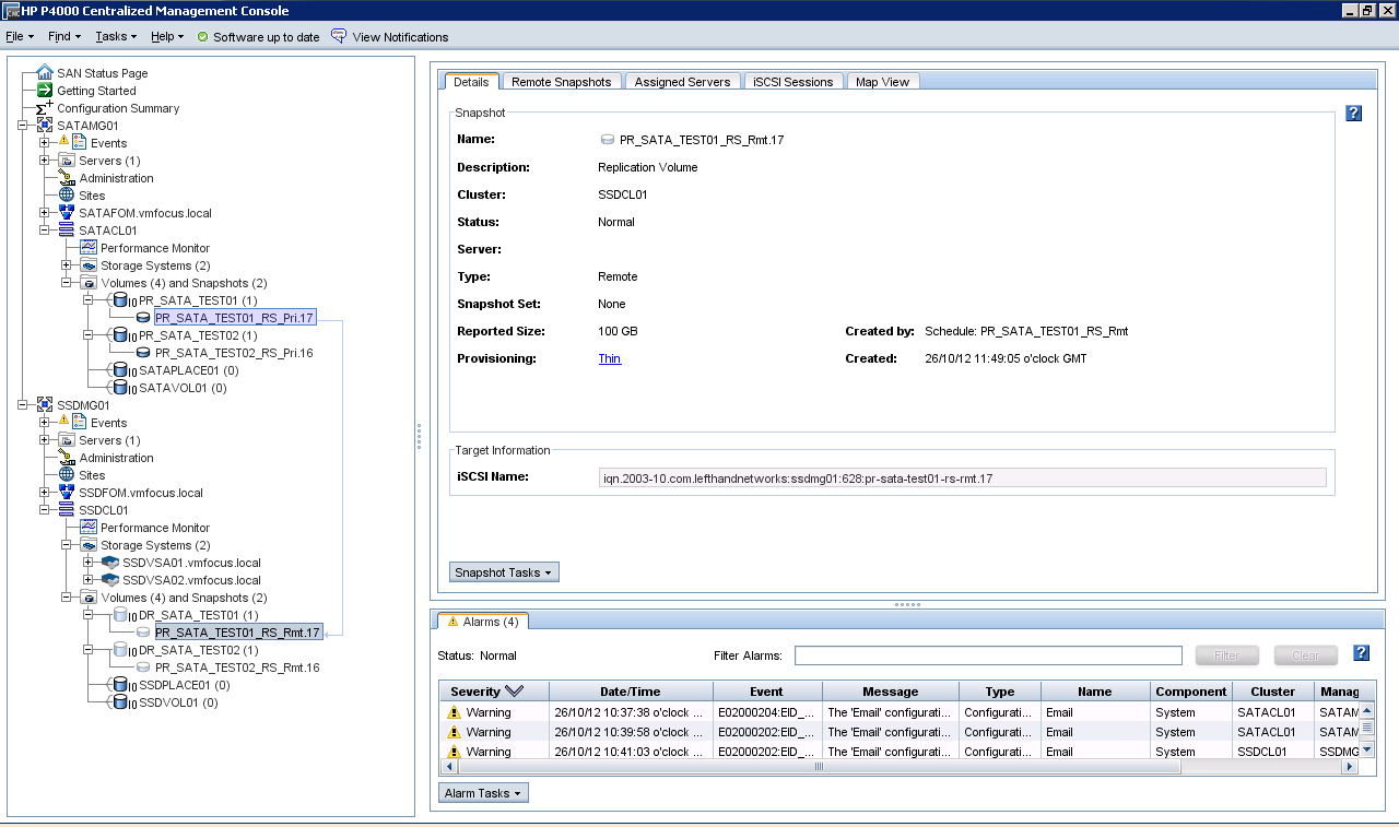 HP StoreVirtual is actually very clever, what it has done is load balance the iSCSI connections for the volumes across both nodes in case of a node failure. In this case SSDVOL01 via SSDVSA01 and SSDVOL02 via SSDVSA02. If you have ever experienced a StoreVirtual node failure you know that it takes around 5 seconds for the iSCSI sessions to be remapped, leaving your VM’s without access to there HDD for this time.