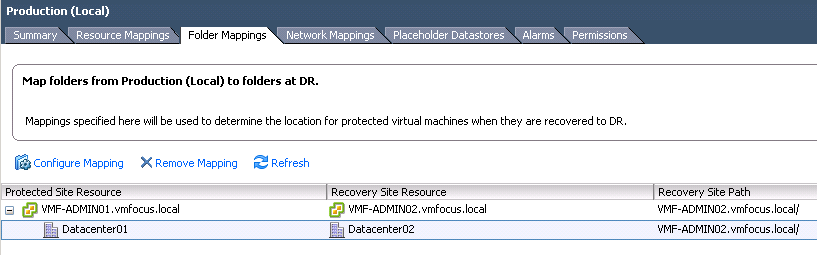 How do we know that what we have done is rock solid? Well if we go onto VMF-ADMIN02 which is our vCenter in DR, we should see VMF-TEST01 and VMF-TEST02 protected by superman, err I mean SRM.