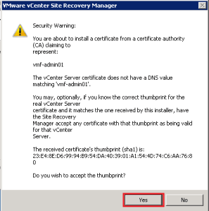 We now get a pop up asking if we want to replicate recent changes or not for the test. If you select yes, SRM will use the SRA to send the commands to the HP StoreVirtual VSA to replicate the Volume PR_SATA_TEST01. I’m going to choose no, as I haven’t actually changed any data (we will do this later). Click Next