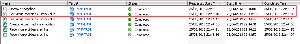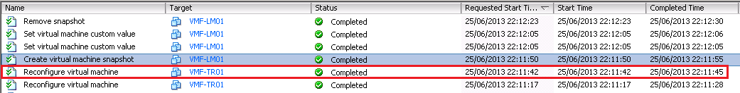This can be verified by checking the Snapshot Manager for VMF-LM01.
