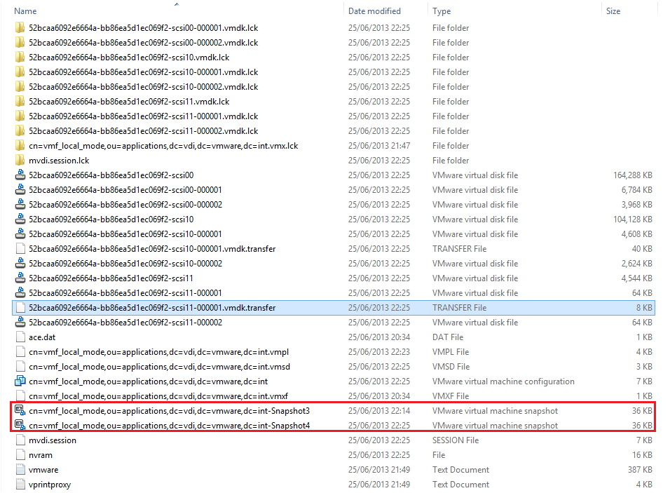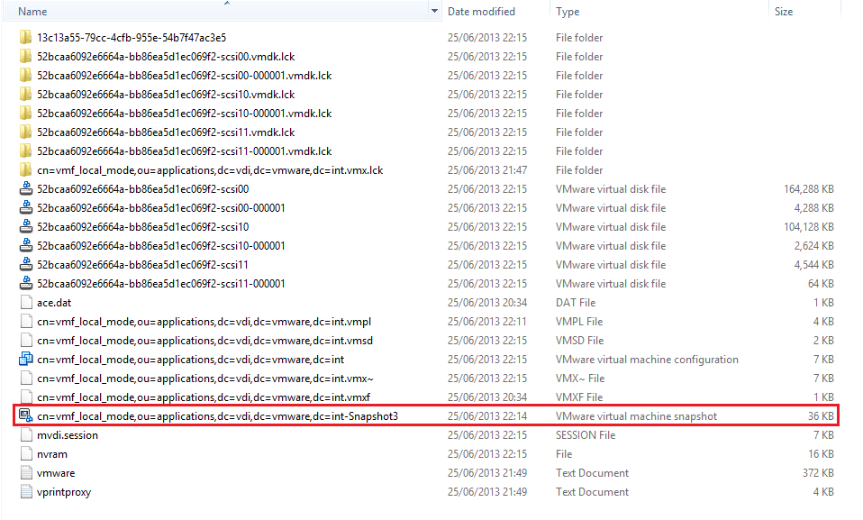 If you monitor the location of your ‘Offline’ Local Mode Desktop, the default location is C:UsersUser NameAppDataLocalVMwareVDMLocal Desktops you will notice a Virtual Machine Snapshot File