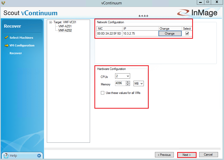 - Protect three seperate vSphere VM’s three tier application (web, middleware, database)