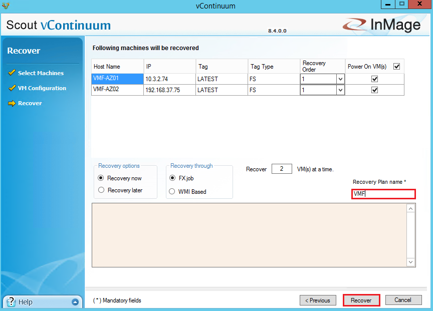 As no recovery plan is available. A manual list of VM start up orders and actions needs to be maintained.