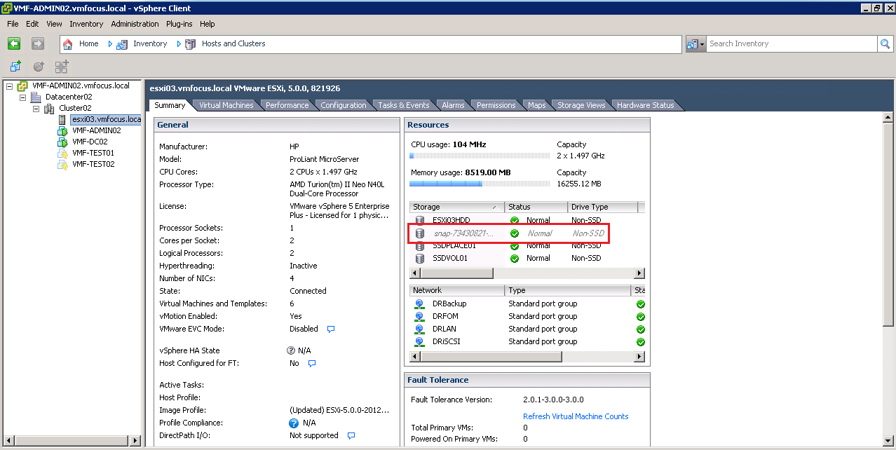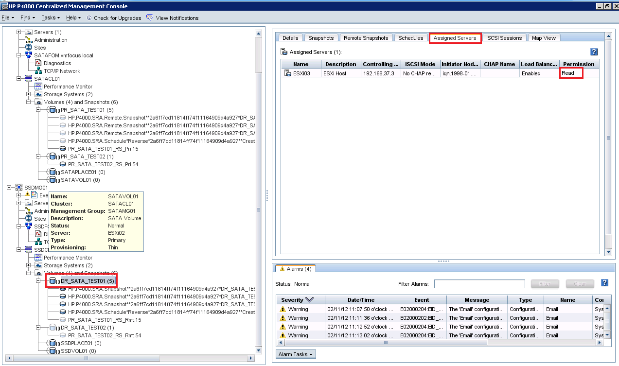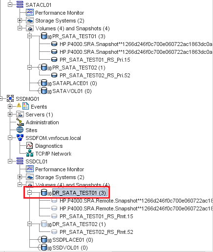 Lastly, a look at CMC to check on our HP StoreVirtual VSA, as you can see we still have two Primary copies, but again DR_SATA_TEST01 is now read only