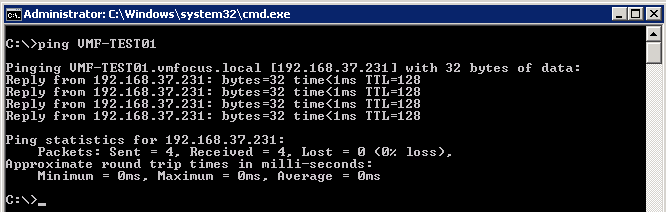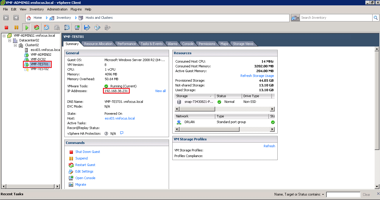 At DR, VMF-TEST01 is up and running and it’s IP Address has been successfully changed.