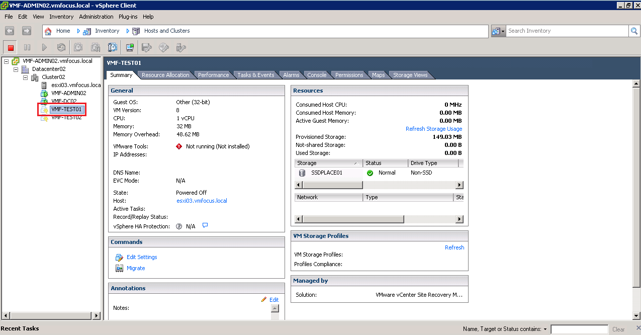 VMF-TEST01 is in a good place, as it’s being replicated to our DR site