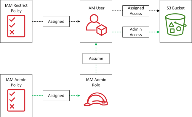 IAM Roles can also be used to provide users with enhanced privileges on a temporary basis for example a user requires occasional admin access to an S3 bucket.